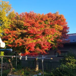 その一方で、滝道の庭に立つもみじは、ようやくゆっくりと色づき始めました。季節の歩みも、人それぞれ、木それぞれですね。